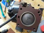 On démonte la culasse, qui est bien collée. J’ai un maillet caoutchouc de carreleur qui nous aide bien à la décoller sans faire de dégâts.