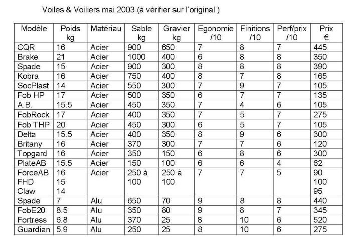 J'ai sur le pont une ancre soc de charrue , une 60 LB CQR articuée en acier coulé (l'original), et je me demande si elle serais plus sécurisante que la plate , je cherche également une Kobra 2 de 25kg, j'en ai trouvé une d'occasion  elle fait 35kg elle est magnifique, peut etre un peu lourde, mais elle n'est qu'à 160£ et je n'oublie pas que mon canot