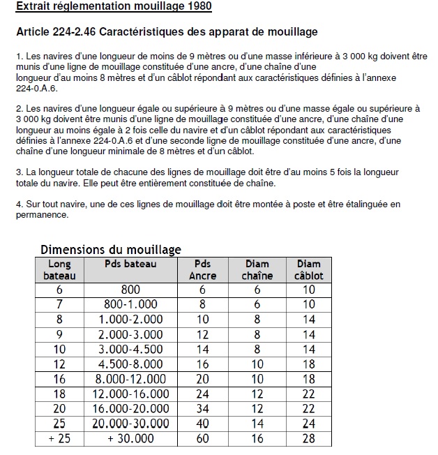 Et puis, si on se réfère à la réglementation de 1980, qui n'était pas idiote en ce qui concerne les apparaux, tu serais parfaitement dans les normes, pour les 18 tonnes de ton beau bateau.