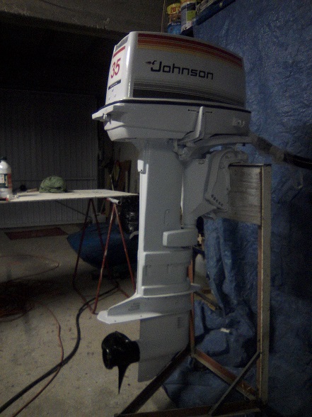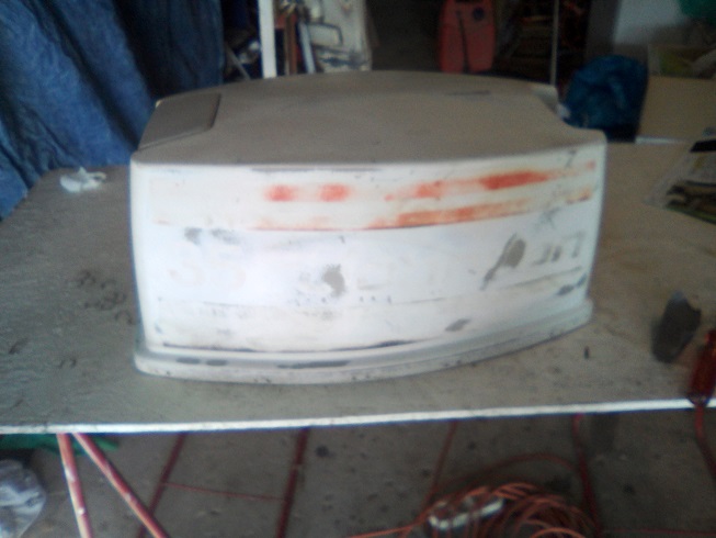 Aujourd’hui, cause de pluie, propreté du moteur. En premier, dépose du joint du capot. Une cochonnerie. Johnson n’a rien trouvé de mieux que de l’agrafer.
