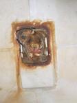 Au centre, une découpe de la plaque reprenant l'empreinte interne du mât hérissée d'équerre de sécurité pour assurer le maintien du mât, au cas où.