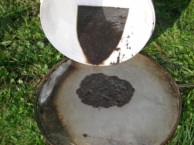 Maintenant, je remplis mes jerrycans à la station la plus proche, j'ai un petit diable pliant, et je filtre ( le sopalin est très efficace avec un grand entonnoir)