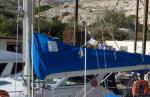 Mais voila. Il y a deux sortes de fabrication. Une avec fermeture éclair sur le devantdu mat construit dans un seule bloc et une autre solution avec une capuche que l'on rajoute autour du mat et qui reviens couvrir la baume que l'on retire a chaque fois lors du montage de la grand voile.