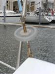 Il faut cliquer dessus pour avoir une image visible car le dessin au crayon n'est pas trés contrasté Mode d'emploi : maintenir le coté pataras ou étai largable pour qu'il ne parte pas en rotation lors du réglage .Dans le cas d'une utilisation pour l'étai largable , à chaque extrémité j'ai un mousqueton ce qui me permet de mettre trés rapidement l'étai en place. Les photos ne concernent que le montage sur le pataras car les autres photos sont perdues dans l'ordinateur .Elles montraient le montage pour l'étai largable et le dessous du montage