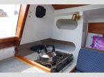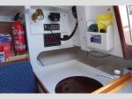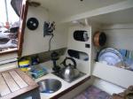 Sur le bateau standard, le coin cuisine est à 2 feux à bâbord, mais pas sur cardan, un évier recouvrable à tribord.