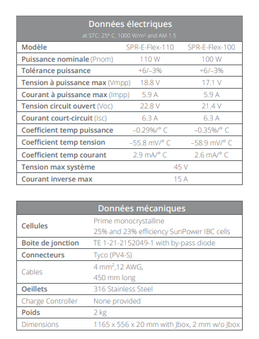 Les panneaux souples ne correspondaient pas a mes besoins en terme de voltage et de puissance.  il me fallait une grosse tension pour que le régulateur MPPT fonctionne dès qu'il y a un peu de luminosité. a ce niveau, il ne se fait rien de mieux qui les demies cellules qui ne sont pas dispo en souple. avec 360 demies cellules PERC, ça répondait parfaitement a ce qu'il me fallait.