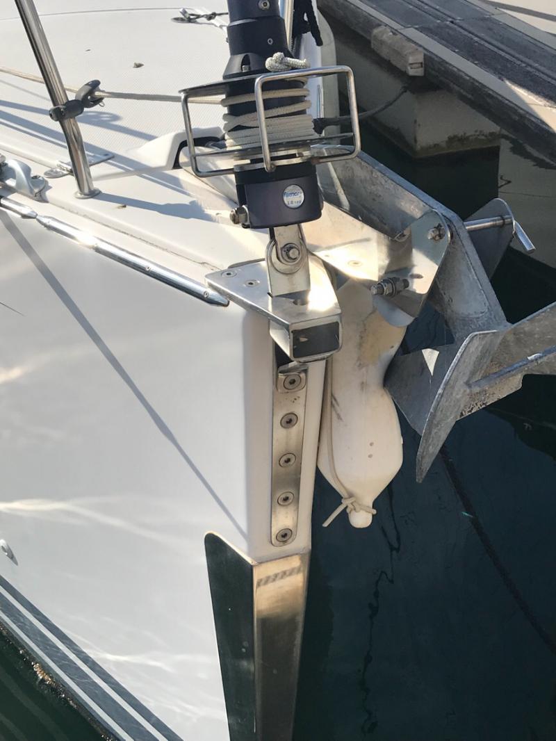 Le bout dehors de Sandrea est un mât de PAV 100% carbone, renforcé et sous vide+étuve. Il dépasse de l'étrave d'un mètre avec sous barbe . Le spi fait 52 M2. Hier, on a fait Sete Carnon entre 4,5 et 5 noeuds. Vent de Sud-Ouest entre 6 et 8 noeuds. Le reve! Par contre le matin, on a galéré....pétole jusqu'à 10h  |