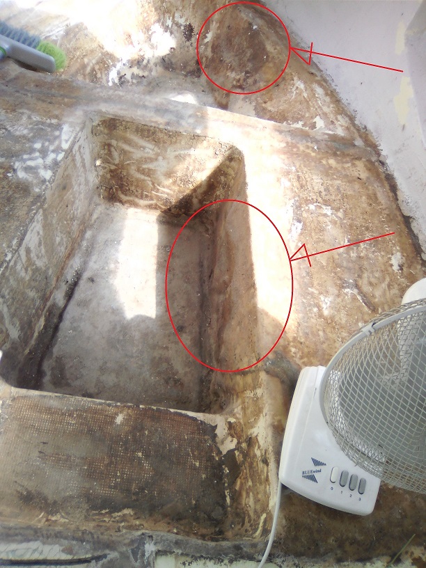 j'ai décidé de commencer par l'avant, donc gros nettoyage pour enlever la colle sur les couchettes, et remise en état je la partie boursouflée de l'ancienne réparation.