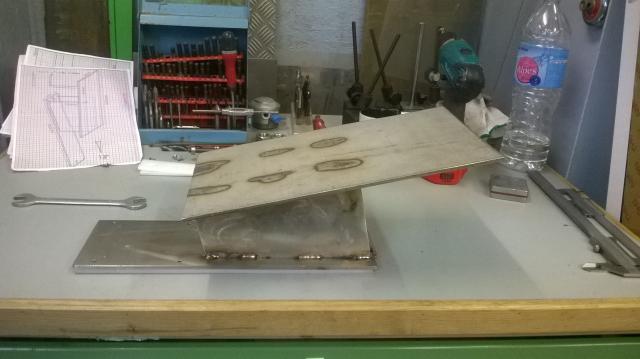 bon ce soir atelier soudure .assemblage du chariot , malgré l’épaisseur conséquente ça se tortille , heureusement l l inox c'est mou que de la chic , et çà se redresse bien  .