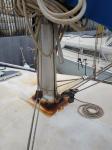 Concernant la rouille, ces photos me font penser à une corrosion due à un courant de fuite inverse. Ces problèmes apparaissent quand on se sert du mat comme masse pour alimenter les différents feux de route voir l'antenne vhf et quand on relie la terre du secteur au moins (-) du bateau. Des courants de fuite peuvent reboucler avec un bateau voisin en passant par le fil de terre  Même l'inox se transforme en rouille. Ci-joint un lien qui donne quelques infos sur ces phénomènes.