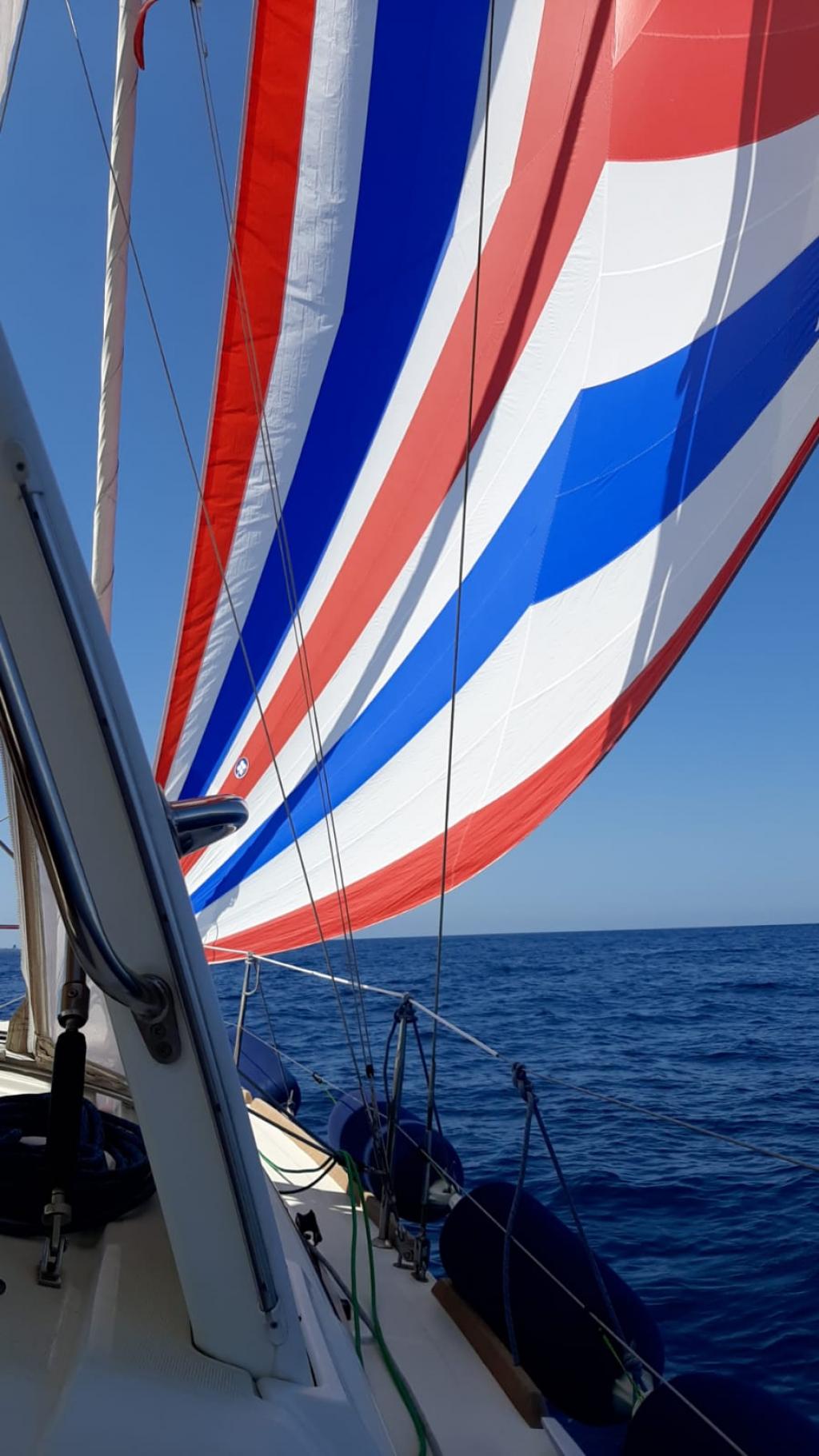 En effet, le gennaker ainsi que le spi asymétrique, semblent donner quelques chevaux supplémentaires, par petit temps.