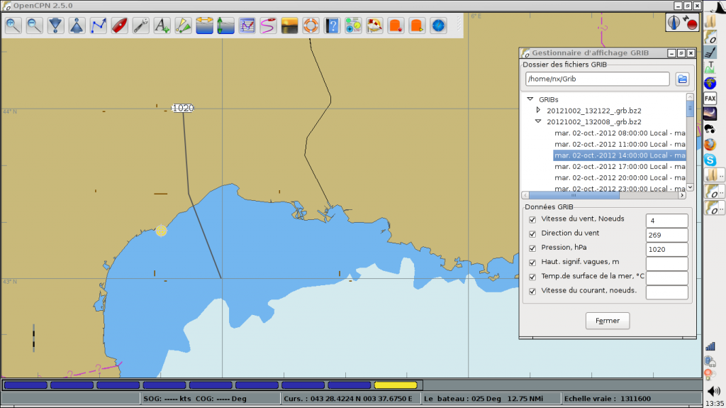 Par défaut, il est localisé sur Balboa, Panama. Pour changer, Files / Location, à droite, cliquer sur le champs "Cen. America, Pacific" et choisir Europe. En dessous, choisir France, puis dans la liste de gauche, choisir son port de référence. OK, fermer et contrôler.