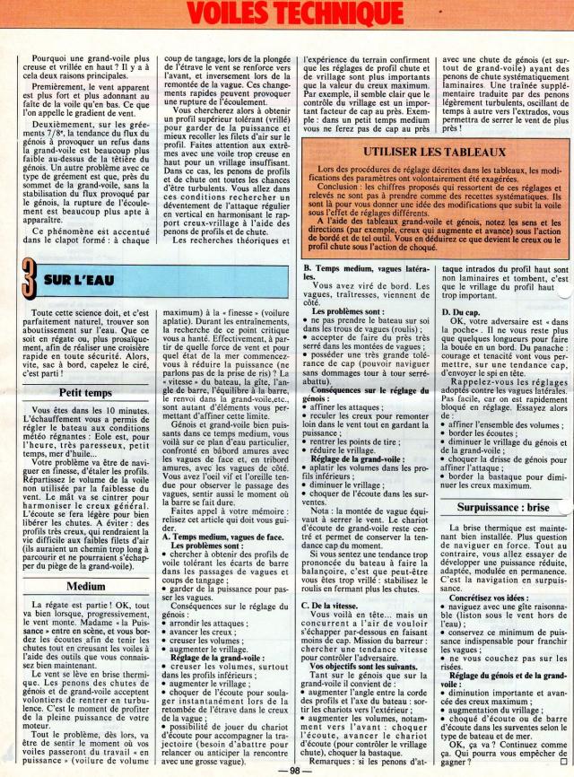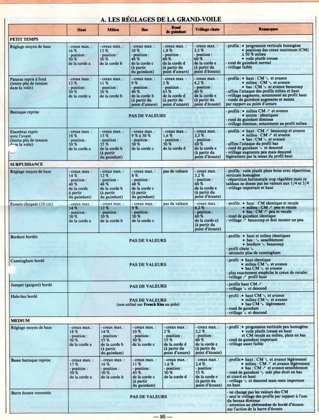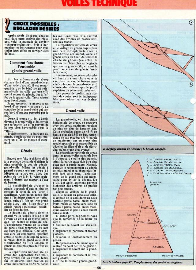 | Je ne reviens pas sur les voiles vendues avec les bateaux neufs, les faits sont là. En ce qui concerne les réglages, la littérature est pléthorique et chacun à son avis, perso, je suis plus adepte de Bertrand Chéret. Je suis aussi (peut être en raison de nombreuses années en manche ouest) de ceux qui envoient la GV avant d'être sorti du port, et ne la rangent qu'une fois rentrés, ou lorsque ce n'est vraiment plus possible de la tenir. Je trouve que la GV est injustement délaissée, et surtout sur les anciens plans de voilure, parce que petite. La généralisation des GSE a entériné le mésapprentissage de l'usage de la GV (et du tangon au passage). Le coup de la voile unique qui fonctionne mieux que 2, c'est vrai, sur les catboats. Si sur un sloop il y en a 2 c'est pour une bonne raison. Le défaut de réglage que j'observe le plus souvent, y compris en régate, c'est le sur-bordage. "Dans le doute, laisse filer" est un bon mantra pour apprendre à régler ses voiles.