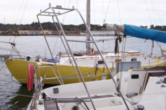 J'ai utilisé les bossoirs existant , en repiquant sur des boulons traversant des tubes de 25mm cintré. Puis 2 raidisseurs sur le balcon arrière . En mer cela tiens jusqu'à 30/35 nds , éprouve. Au port des rafales a 40 /45 nds cet hiver. Voila 3 ans que c'est en place , et pour l'instant très satisfait. Un point a ne pas oublier , prévoir la hauteur sous portique / panneaux / arceaux , car au port cul a quai , en descendant par la passerelle , c'est le scalp ........! ![]() |