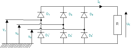 pour moi un redresseur triphase comprend 3 diodes, comment se fait il qu'il y ait un autre montage