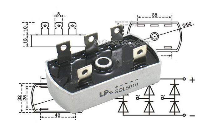 merci les jeunes de vous intéresser à mon cas, vous avez l'esprit plus rapide que moi, mais pour phoques59 je te remercie d'abord, mais j'ai bien mesuré il ne sort pas du continu, mais uniquement de l'alternatif sur les trois phases, j'ai donc fait le même branchement car j'ai quelques notions d'électricité qui me restent, avec un redresseur, mais je n'ai pas bien compris....pour moi un redresseur triphase comprend 3 diodes, comment se fait il qu'il y ait un autre montage? tu peux m'expliquer pourquoi je n'ai que 46% du rendement? pour ce qui est de la résistance j'ai bien compris, mais en branchant un ampéremétre j'ai obtenu 15 volts à 45 noeuds de vent et une charge à 5 ampéres.......il n'y a vraiment pas besoin d'un régulateur, à 15 noeuds, mesurés avant le redresseur, j'ai 4 ou 5 volts alternatif....