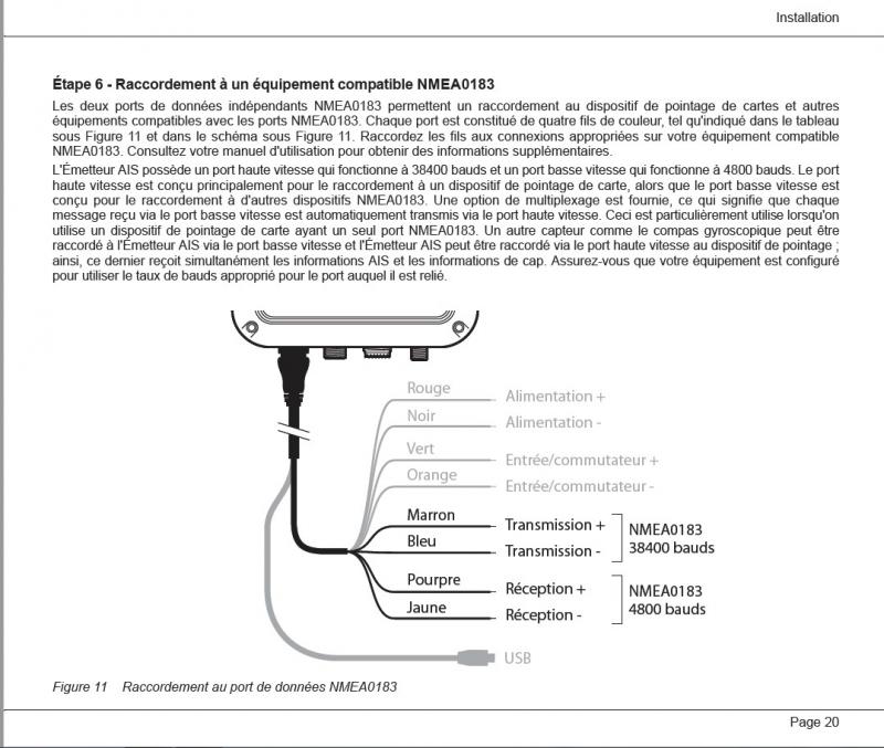 est conseillé d’utiliser la sortie NMEA0183 filaire avec un convertisseur USB. Mais la notice ne le précise pas !!