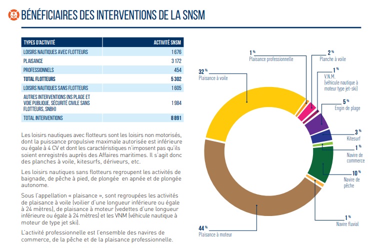 Pas de détails en revanche, en ce qui concerne la plaisance, par type d'interventions (voiliers, moteurs, véliplanchistes.....)