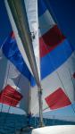 la voile est partie avec le bateau.Elle avait un câble du point d'amure au point de drisse. Je l'envoyais devant l'enrouleur...