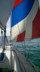 Au changement d'amure, un pan de la voile se collait contre l'autre. Et on se retrouve avec un grand génois... Okay