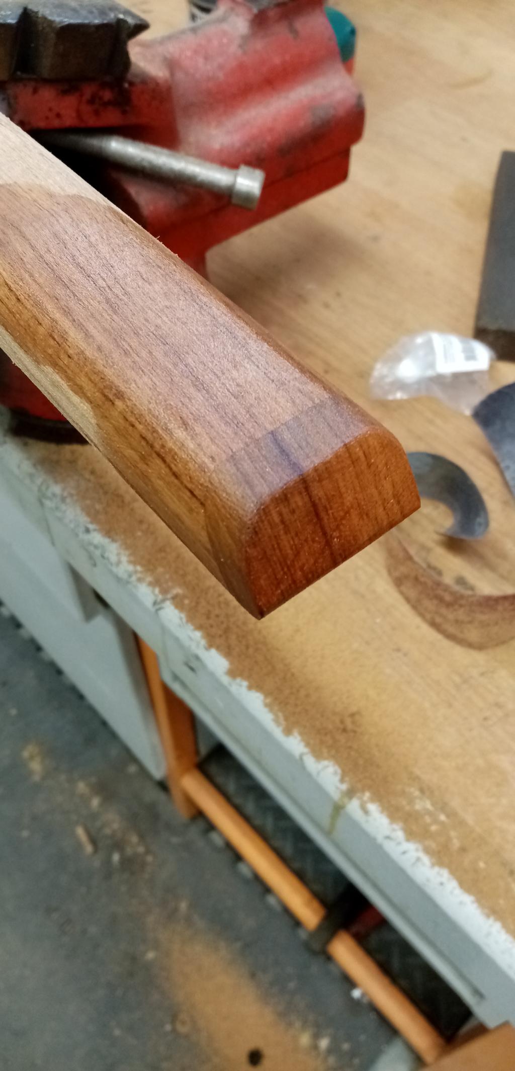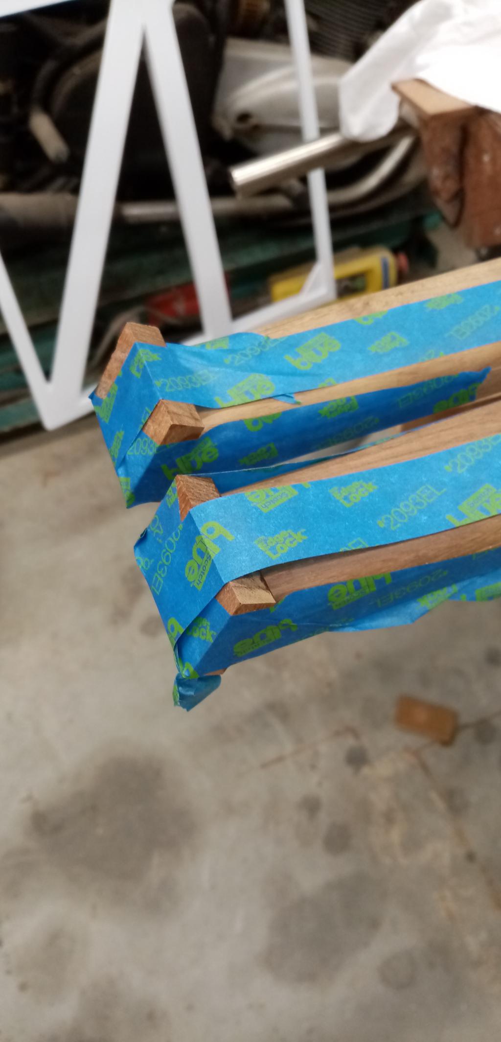 Pour renforcer , je colle un morceau de bois en bout et un coup de râpe et papier de verre pour reprendre la forme du tasseau et le tour et joué , plus solide et plus jolie .
