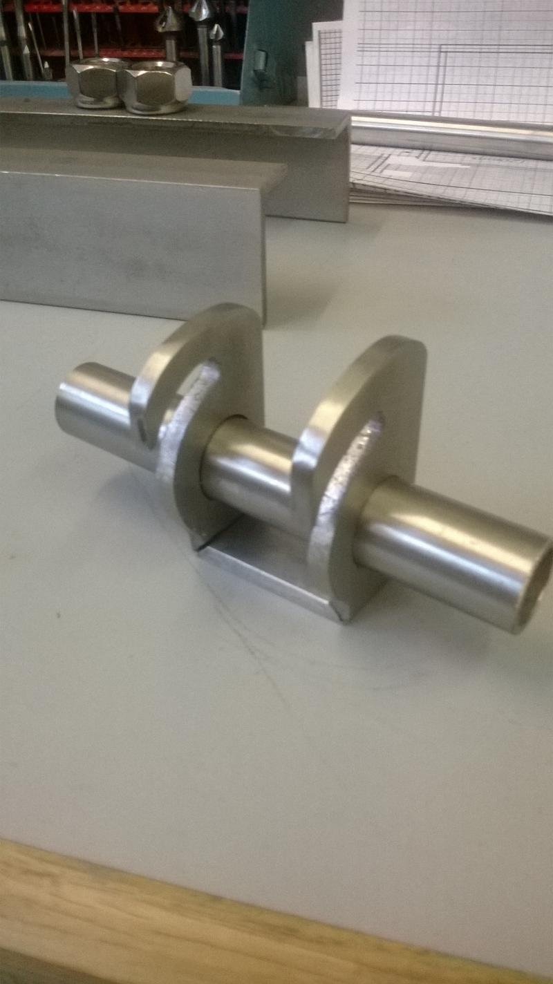 me revoila , j ai bien avance sur la chaise , le plus gros et terminé . j ai prévu un blocage  du moteur en position haute , pour cela j ai réalisé un verrou qui sera articule sur un tube et qui viendra se loger dans le support moteur coulissant .