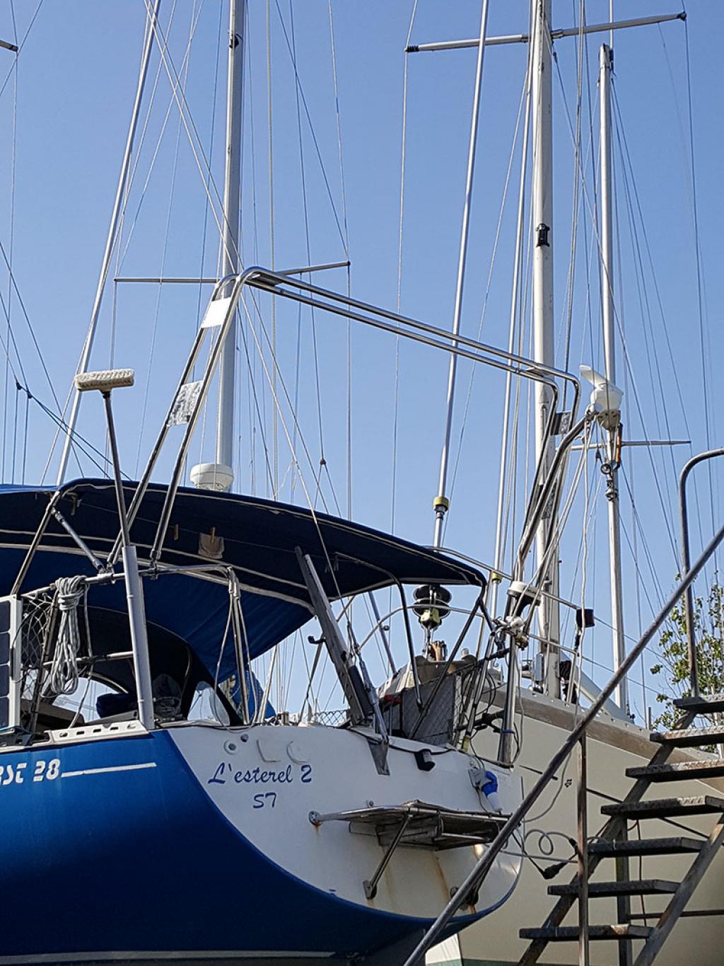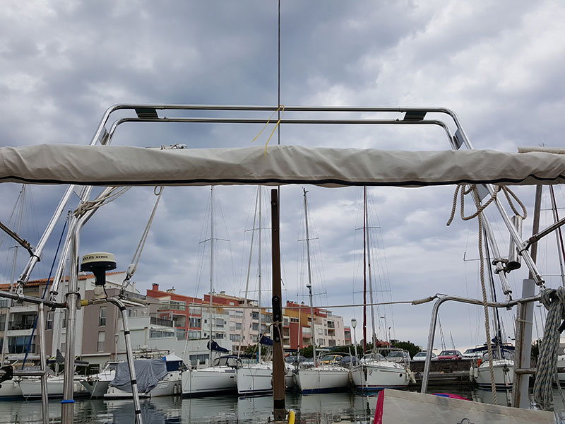 j ai fait la même chose sur Hériona2 un rool bar commander chez orange marine pour 300 roro et dessus j ai mon paneau solaire de 120w mon antenne vhf de secours .