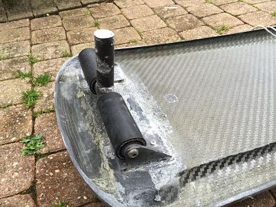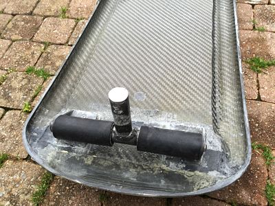 Le système de "roulage" a été fait avec un tube alu que j'ai roulé dans deux plis de tissu carbone. Le tout a été stratifié et renforcé sous la passerelle.