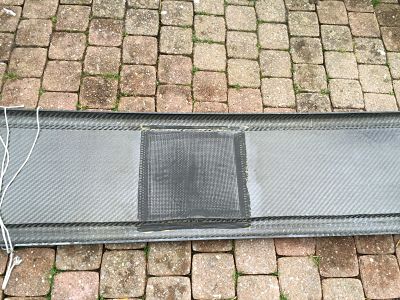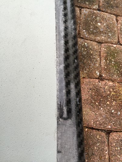 Les extrémités de la passerelle ont été renforcées par un pli de tissus carbone ce qui redonne une nouvelle jeunesse à celle ci. On voit d'ailleurs la pièce de renfort en arrondi sur la photo