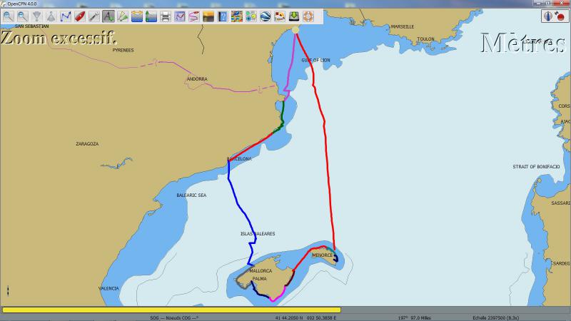 Nous sommes partis du Cap d'Agde le 11/08 à 6h pour arriver dans une petite cala près de Rosas (Cala El Tabal) vers 17h30.