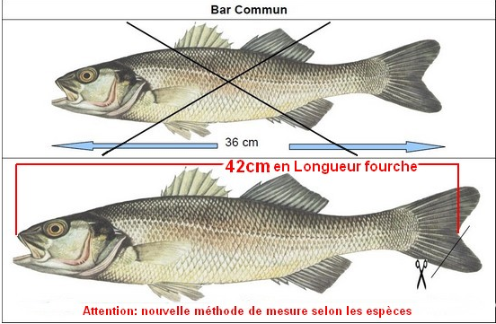 Une nouvelle réglementation a été adoptée sur les tailles de poissons comme pour le bar qui passe à 42 cm mais ATTENTION une nouvelle façon de mesurer le poisson est sortie au journal officiel ,ce qui peut rallonger de plusieurs centimètres vos prises ,les autorités vont veiller au bon respect de cette réglementation. Embarassed Embarassed Embarassed