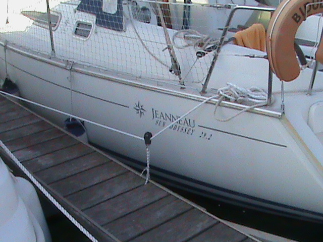 ce système que j'ai mis il y a maintenant un an tiens bien le coup malgré la tramontane résultat: - plus de rupture de la garde arrière suite au frottement sur le rail de fargue - plus de marque de raguage des amarres sur la coque du bateau que du bonheur