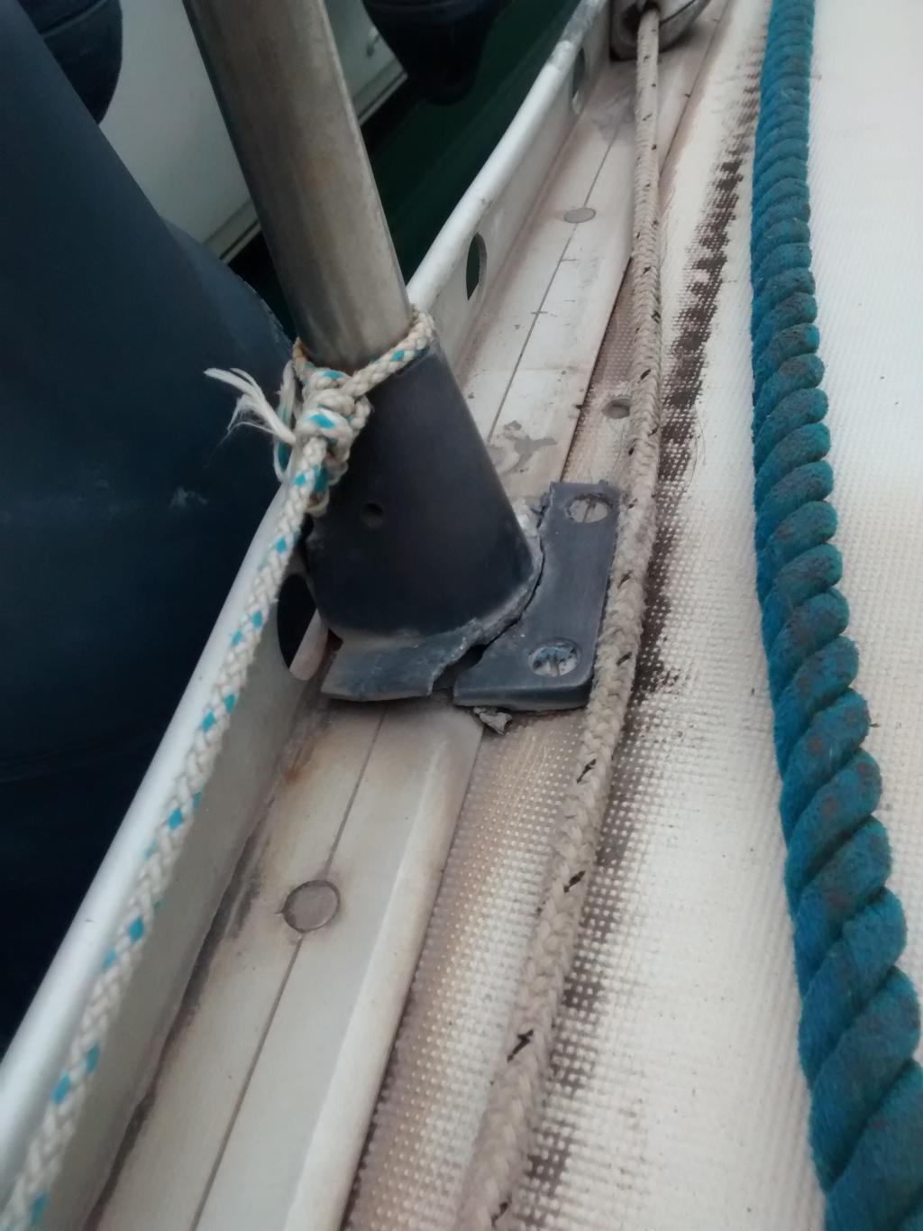 Les dimensions diffères, il y a 2 trous de plus mais je pense pouvoir la fixer uniquement par 4 boulons traversants coque et rail.